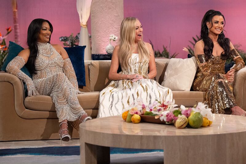 The nice thing about having Kathy Hilton (aside from her cackling throughout Kyle’s “am I a lesbian?” segment) on the show—and previously Kim Richards—is they help contextualize Kyle’s actions, all reacting to their messed-up childhoods in different ways. Kyle would rather have the world see her as the perfect wife with the perfect life, even if she’s miserable on the inside.