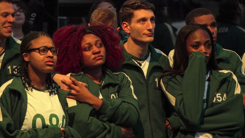 Squid Game: The Challenge opens on Red Light, Green Light, naturally, in a sequence that feels almost like a carbon copy of the original show—except for the fact that, because no one is dying, the contestants don’t experience the wild shock of, “Oh my goodness, everyone around me is being killed.” Still, from the start, the new reality show is able to amp up the thrills, even without kills. It does the same with other returning games from the original show, like the Dalgona and marbles challenges, adding new flair to make up for lower stakes.