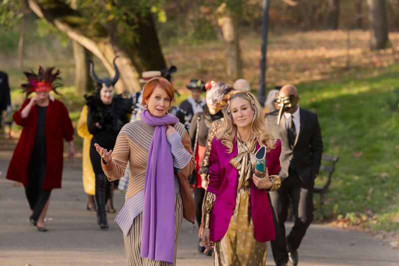 Some might consider a time jump to be a copout. And granted, it is a very easy way to arrive somewhere new in the story without having to do any of the narrative footwork to get there. But on And Just Like That, a time jump is actually a welcome tool. Sex and the City existed outside of time. Think about it: Do you recall a lot of season-specific or holiday episodes of Sex and the City? Sure, there’s that episode where Carrie goes out to Aiden’s farm house in the summer (where Samantha wears one of the greatest hats ever put in front of a camera), and plenty of Hamptons parties. But for the most part, Sex and the City was timeless. It’s part of why the original series holds up so well today—again, within reason.