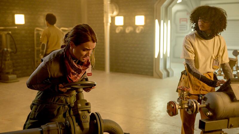 As for acquiring water, the first order of business is retrofitting the ship’s water recycling system, a task that falls to Eva Markovic (Tiana Upcheva), a tough engineer who’s carrying on a secret (because it’s forbidden-by-regulations) affair with Harris Beckner (Dominik Cicak).