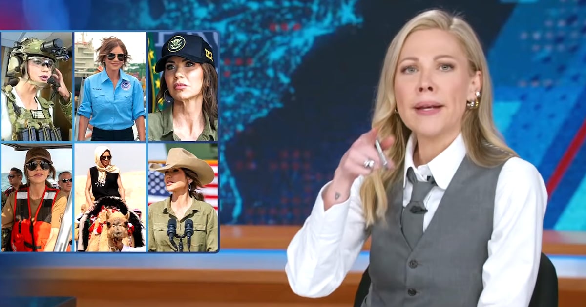 Showing photos of Kristi Noem’s many over-the-top outfits throughout her political career, Lydic said to Bryon, “Oh, she can dress-up and you can’t? F--- that!”