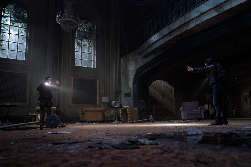 The physicality of this sacrifice makes the moment hold a significant weight that is more brutal in the episode, making the audience feel the impact of Ellie’s sacrifice more than the game. The aftermath sees Dina pulling her gun on Ellie, thinking she’ll have to kill her before she can succumb to the bite and turn into a version of the very creature she saved Dina from. The tension present in this scene is a testament to Merced and Ramsay’s chemistry, which crackles through this otherwise silent scene.