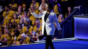 During the ceremonial roll call, celebrities who wanted to be part of history joined delegates on the stadium floor. In addition to a surprise performance from Lil Jon during Georgia’s turn at the mic, director Spike Lee stood alongside New York Gov. Kathy Hochul when she announced the Empire State’s votes. He was later spotted outside clutching a DOUG placard.
