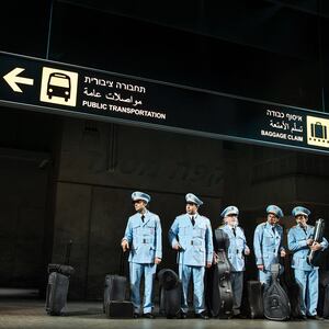 They look inquiring, pained, split about what and who they want in their futures. The production—which I saw and loved when it was first mounted in New York City at St. Ann’s Warehouse last October—is played, extremely skillfully, for laughs and the very opposite of laughs. There are guns on the plywood walls. Shots will be fired.