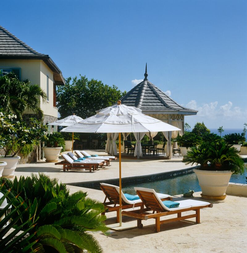 Overlooking Mustique’s harbor on one of the island’s two highest points, this villa mixes classical elegance with breezy, tropical beauty. Interior designer Peter Merino has furnished the home with a balance of light and dark accents that highlight the vibrant natural colors of the West Indies, while sky-high ceilings and open-air terraces allow the ocean breeze to make its way through the villa.