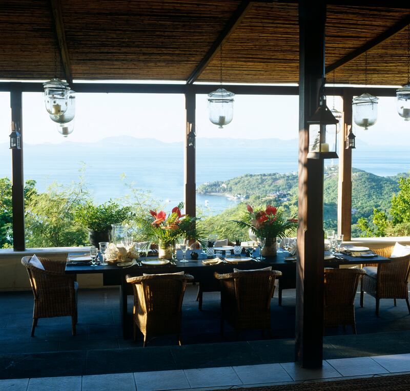 Rows of storm lanterns hung from the rattan ceiling light up the Caribbean waters and lend a soft glow to evening meals out on the terrace.