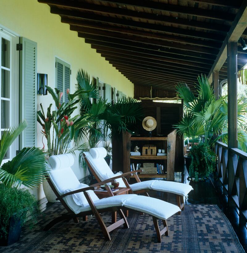 One of several terraces on the property, this ideal spot for a breezy, open-air supper overlooks the white beach below.