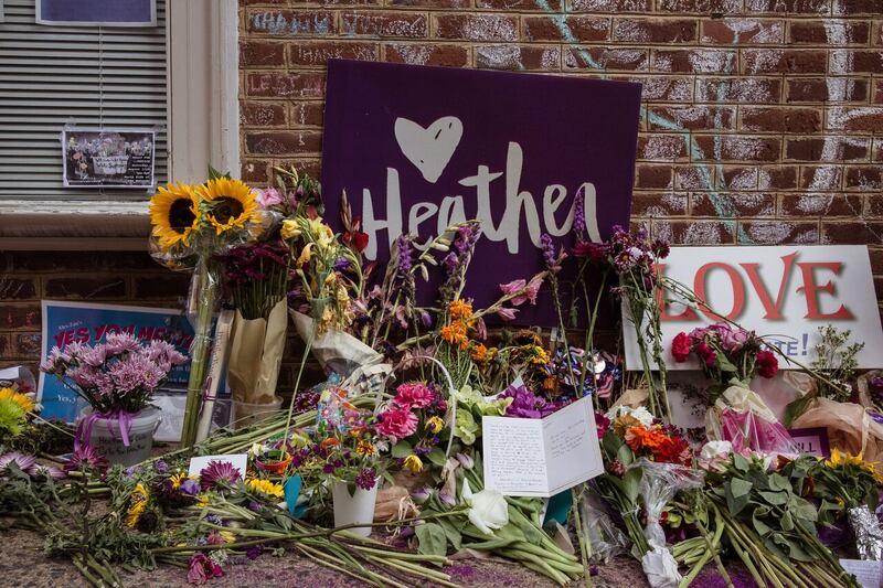 “It’s understandable, but nothing really happened today, so it’s probably a little bit overkill,” Jae Em Cario, a local anti-fascist activist said. He was visiting an impromptu memorial at the site of Heyer’s murder, where community members had left flowers and chalk messages.