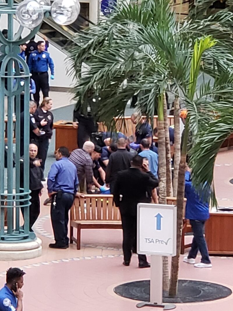 “At that moment he turned and faced the main hall, extended his arms to the side and let himself fall. I looked away at that moment when I realized he was jumping. I covered my ears, but the sound of impact was still audible. Families and children looked on in shock, and tears started to fall from the people in the area. I was standing about 20 feet from where the man landed. Once the shock set in, the TSA agents at security rushed everyone through and guided us to an exit outside the airport.”