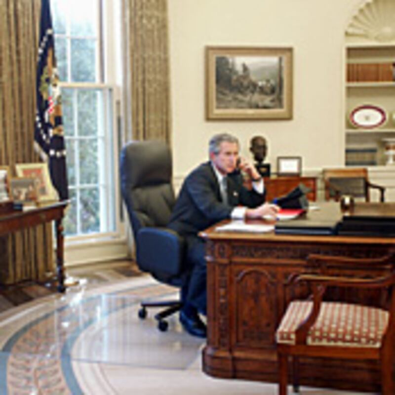 Well, I’m starting to sound as pompous as Bill Bennett, so let me simply admit to having been darned well entertained by Speech-less. There are some excellent moments here: Karl Rove behaving like a lunatic; Latimer not daring to return a phone call from Richard Gere about the Dalai Lama for fear that the press will say that the President was consulting with an actor; George W., worn down by crisis, growling about Hillary: “Wait till her fat bottom is sitting at this desk;” and about Obama: “This is a dangerous world and this cat isn’t remotely qualified to handle it. This guy has no clue, I promise you;” W. on the recently nominated Sarah Palin: “What is she the governor of—Guam?”