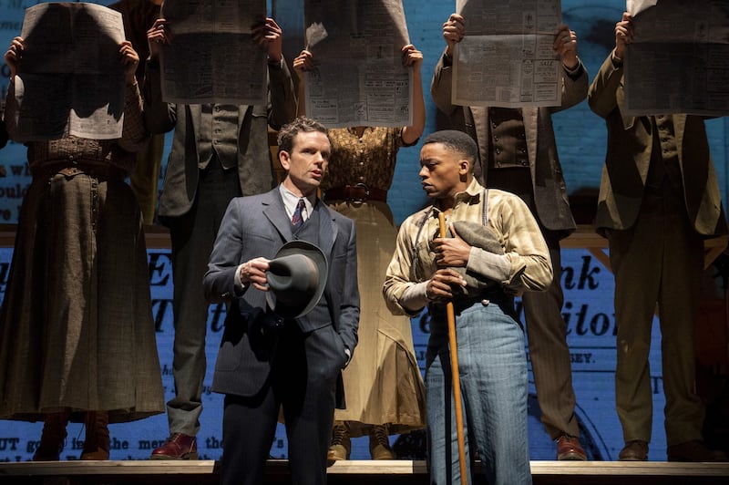 The musical doesn’t know if Leo Frank is guilty, and by holding so close to identifiable bits of injustice he endured it soon exhausts its own emotional and storytelling fuel. It seems also resolutely opposed to playing Leo and Lucille as bigger characters, or investigating their relationship, or their thoughts about the case. Everything obvious you would want a lead character in Parade to express or consider goes unexpressed and unconsidered.