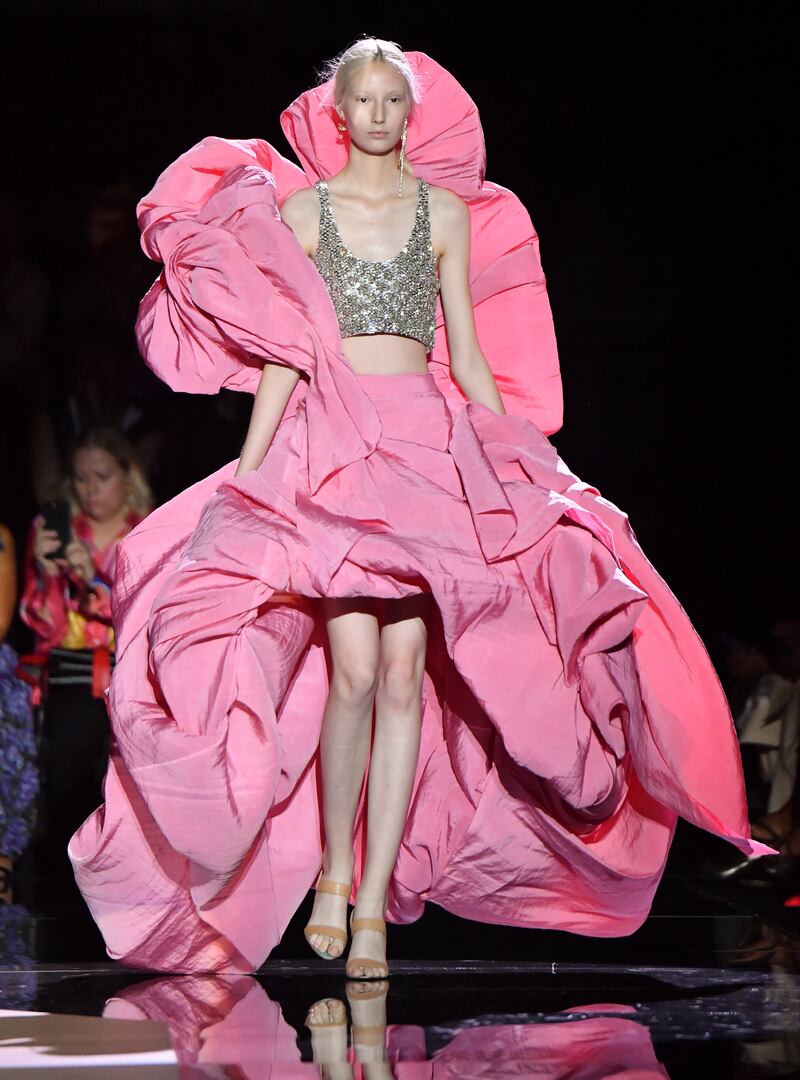 Daniel Roseberry presented his first collection for the revived house of Schiaparelli. The Texan alumnus of New York label Thom Browne drew upon the eccentric designer’s spirit of irreverence and originality, without drawing too heavily on iconic motifs and designs. Still, several of his OTT frilly dresses looked like something a lobster could wear to a ball, so unusual were their shapes.