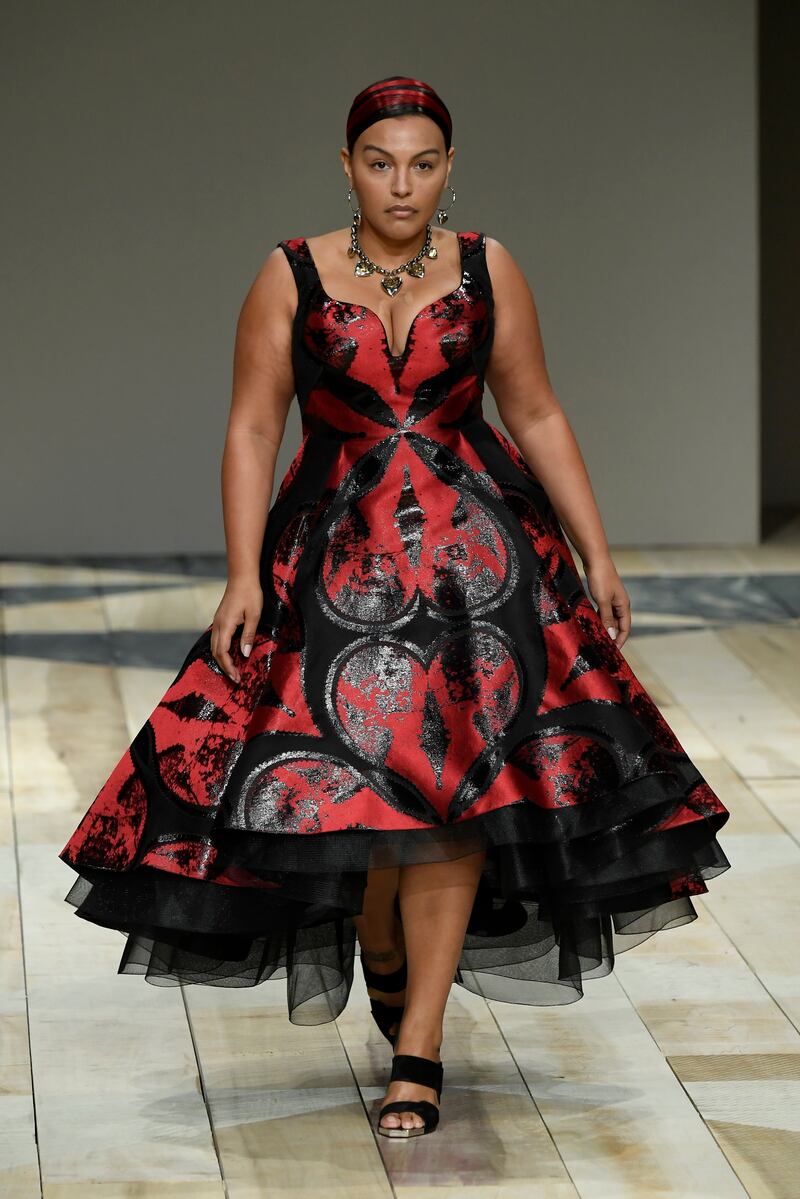 Designer Sarah Burton sent curved models down the runway, as part of what she called a love letter to all women. The design was inspired by Wales. Think lace, oversized Celtic knots, and folklore galore.
