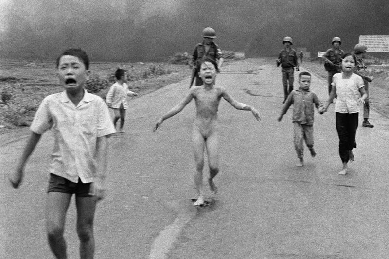 “This isn’t like a naked child running from a napalm bombing that’s going to alert Americans to part of what’s happening in a war in which their country is engaged,” she said, referring to Nick Ut’s iconic 1972 photo of a naked Vietnamese girl, her face contorted by pain and fear and her clothes melted off by napalm fleeing in fear. “That was a much-debated photograph”—in part because it violated the wire’s strict ban on nudity—“but there was also a much more persuasive argument that it filled a news function.”