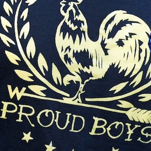 The Proud Boys frequently glorify violence, especially against the left. When leftist protesters assembled for a teach-in this past weekend, Proud Boys arrived at the event and shouted at speakers. Video from Daryle Lamont Jenkins, director of the anti-racist organization One People’s Project, shows a Proud Boy shouting an anti-gay slur at him. Another shouts “fuck that bitch,” when Sen. Kamala Harris is mentioned.
