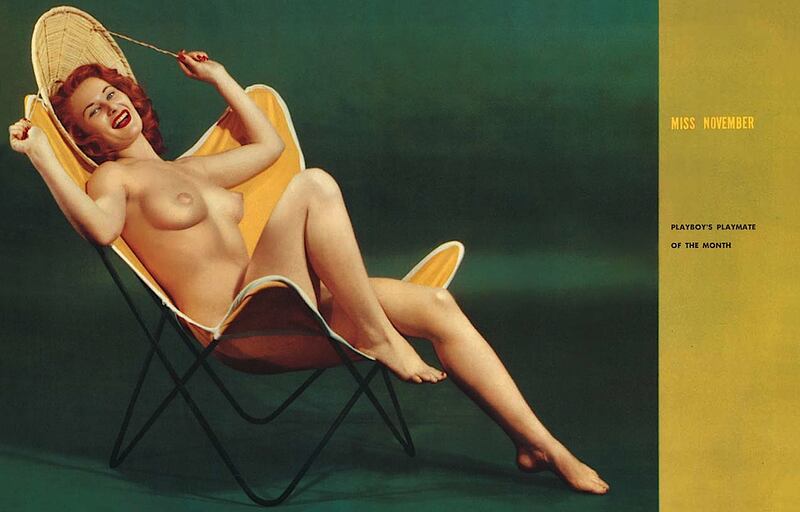 Today’s image, appropriately, shows “Miss November, 1954”, who starred in a recent lecture at the Artist’s Institute by the great architectural historian Beatriz Colomina. Colomina presented research by her team at Princeton showing how, throughout the 1950s and 60s, Playboy magazine was a crucial promoter of modern design. It published features on cutting-edge architects and designers and often posed playmates in their classic pieces – as here, where model Diane Hunter sits in a butterfly chair by Jorge Ferrari Hardoy.