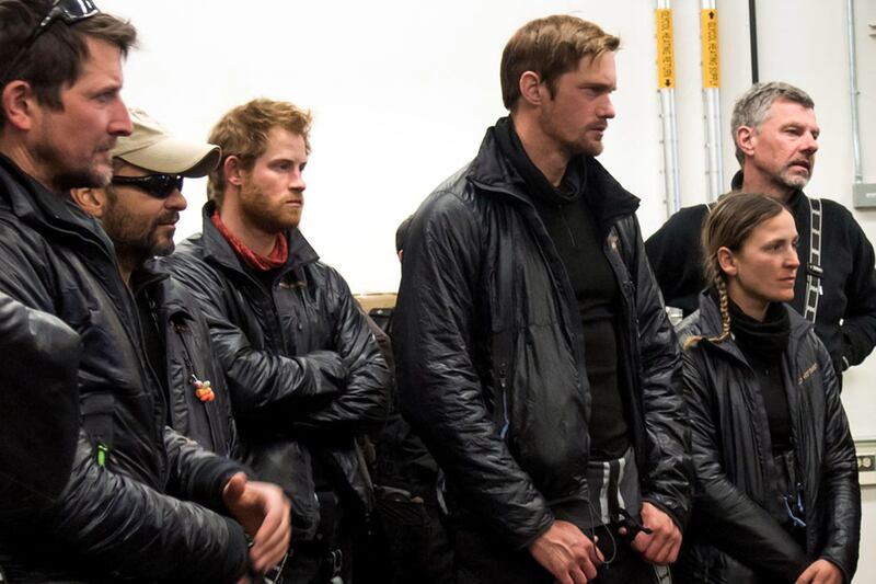 Prince Harry lined up for this latest photo with Alexander Skarsgård, the actor who was the celebrity patron of the American team.Three teams of seven participants each - representing the United Kingdom, the United States and the Commonwealth took part in the Virgin Money-sponsored event in aid of the charity Walking With the Wounded.The teams arrived on Dec. 13 at the South Pole after a difficult trip bedeviled by atrocious conditions.