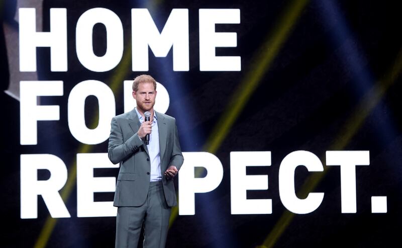 Britain's Prince Harry speaks during the opening ceremony of the Invictus Games, in Duesseldorf, Germany, September 9, 2023.