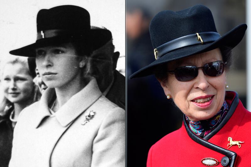 Princess Anne, the Queen's thrifty daughter, wore the slightly battered, black Homberg-style hat to Cheltenham - which she first sported 45 years ago in 1969.