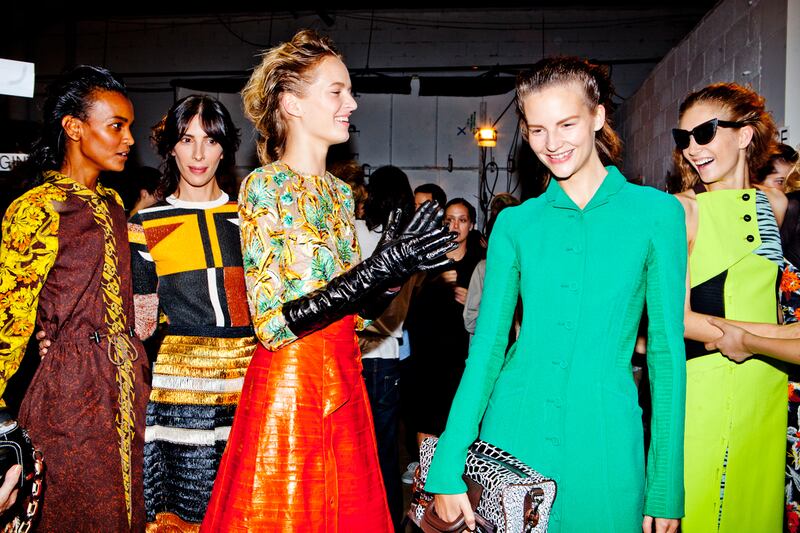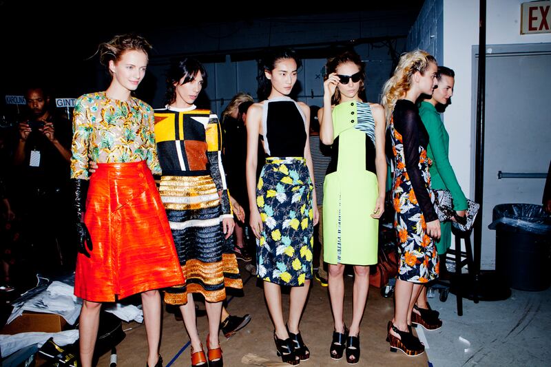 Proenza Schouler’s Spring Summer 2012 collection, which showed during New York Fashion Week on Wednesday night, was a tour-de-force of color and texture. It was inspired by the Googie Architecture of the 1940s: a style born from Southern Californian car culture that came to encompass everything from the Seattle Space Needle at the World’s Fair to The Jetsons. The Daily Beast’s Kevin Tachman went backstage to capture the minutes before the show.