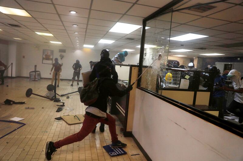 Protesters vandalize a bank branch, housed in the magistracy of the Supreme Court of Justice.