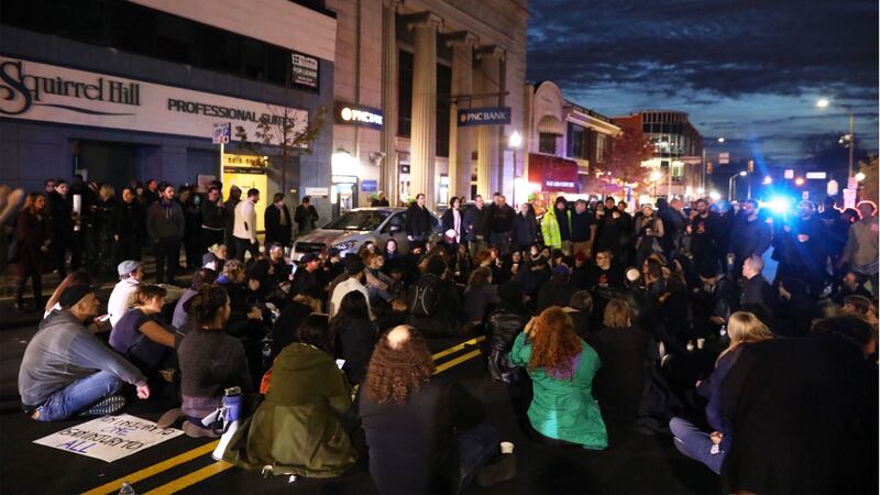 PITTSBURGH, PA—As President Donald Trump visited the Tree of Life synagogue, where a gunman killed 11 people in the deadliest anti-Semitic attack in U.S. history, a throng of protesters snaked through the neighborhood, filling Squirrel Hill with activity for the first time since the massacre on Saturday.