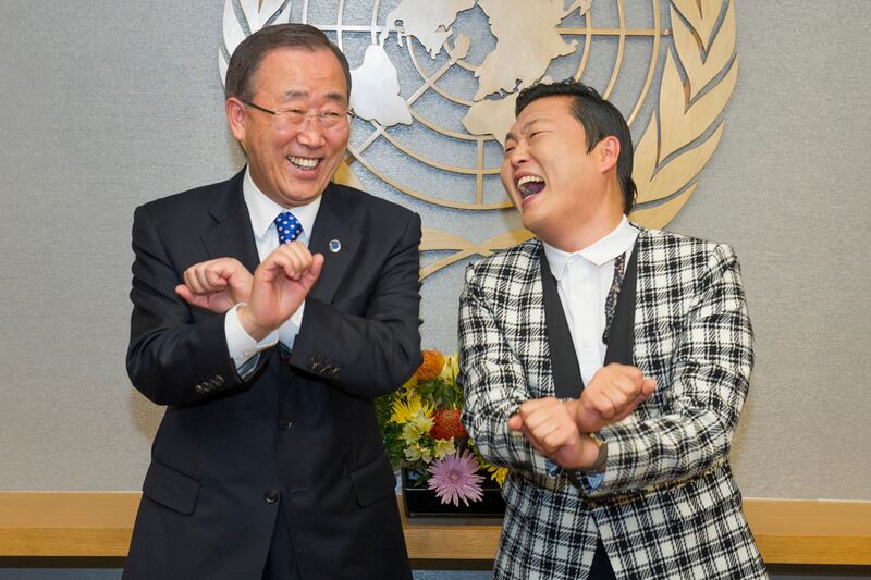 South Korean K-Pop crossover sensation and unstoppable conqueror of YouTube (and your eardrums) Psy made his latest—and most unlikely—stop on his quest for total omnipresence with a trip to the United Nations, where the “Gangnam Style” singer praised U.N. Secretary-General Ban Ki-moon’s work for Korea. Ban, in turn, rode the invisible pony in honor of Psy.