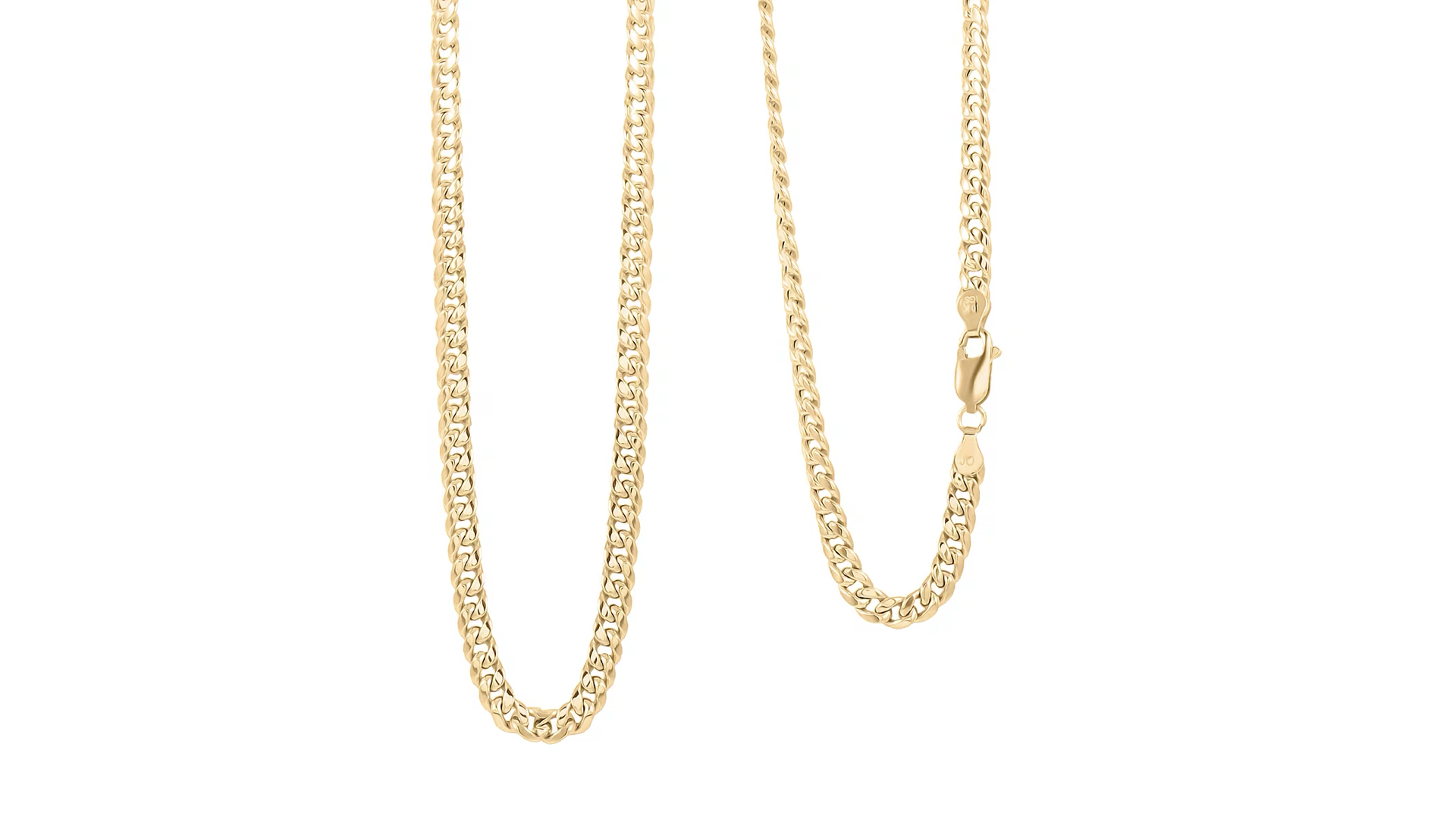 The 10K Gold Hollow Miami Cuban Necklace is 26 inches and weighs 6.5 grams. The substantial chain is timeless, bold, and can add glam to any outfit.