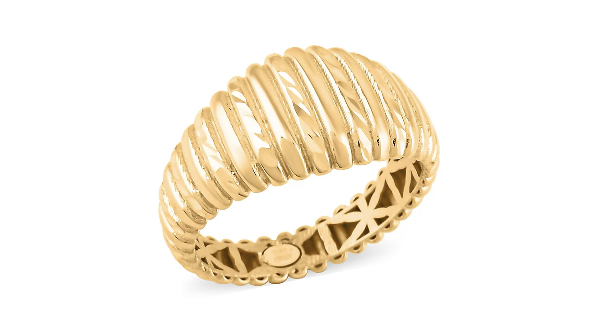 The 10K Gold Italian Wave Ring weighs 2.5 grams. The diamond-cut wave pattern beautifully reflects light, offering a subtle, eye-catching style.