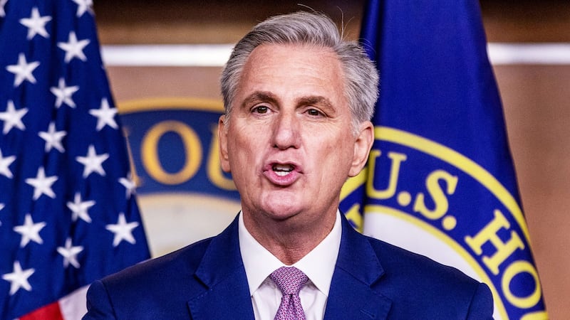 House Minority Leader Kevin McCarthy holds his weekly news conference at the U.S. Capitol on March 9, 2022 in Washington, D.C.