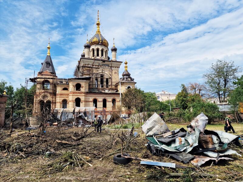 Despite the suffering Ukrainians continue to show the most remarkable resilience. When The Daily Beast arrived on the scene in Vinnytsia on the evening of the strike, the city authorities had already cleared much of the rubble. Residents of civilians’ homes could be seen from the street repairing broken walls and windows. Katya and her colleagues all had brooms and shovels to sweep up the mess in their offices and planned to be back at work the following week. Authorities were carting out the burned-out orange husks of cars on the back of pickup trucks.