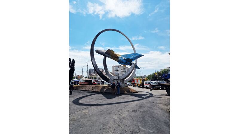 In the destroyed center of Vinnytsia’s square is a replica of a World War II fighter plane—a memorial to the Soviet Air Force that helped defeat the Nazi armies. Back then Russian and Ukrainian troops fought as part of one army: now they tear each other apart on the most brutal battlefields Europe has seen since 1945. Several holes have been blown in the plane’s fuselage and wings by missile fragments, but the frame has held together. It looks like a bomber that’s just returned from a daring bombing raid on Berlin.
