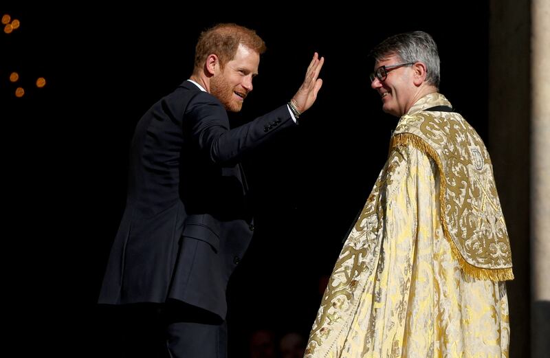 Prince Harry arrives to attend the Invictus Games Foundation 10th Anniversary Service of Thanksgiving at St Paul’s Cathedral, in London, Britain, May 8, 2024.