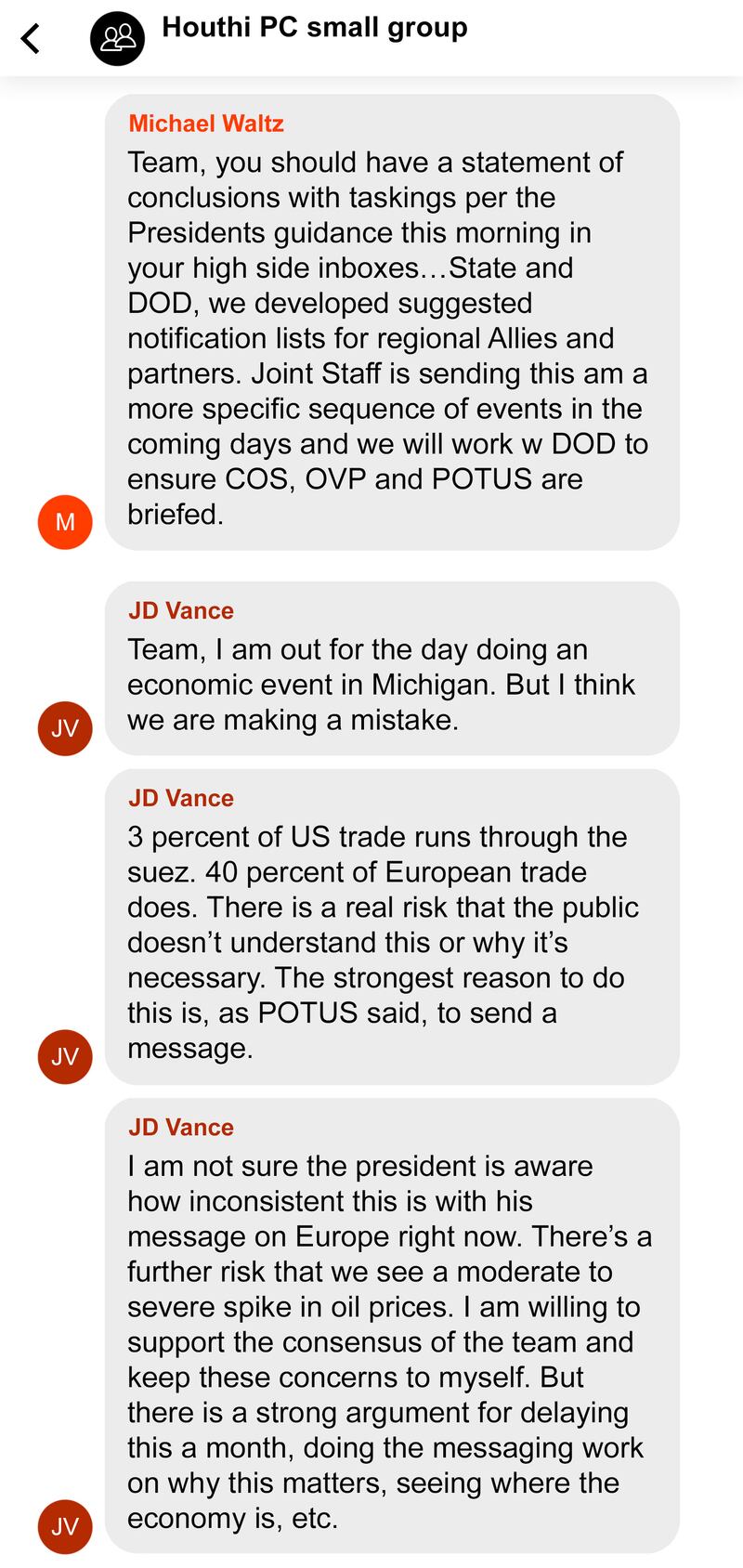 Here are some of the messages sent in the Signal group chat.
