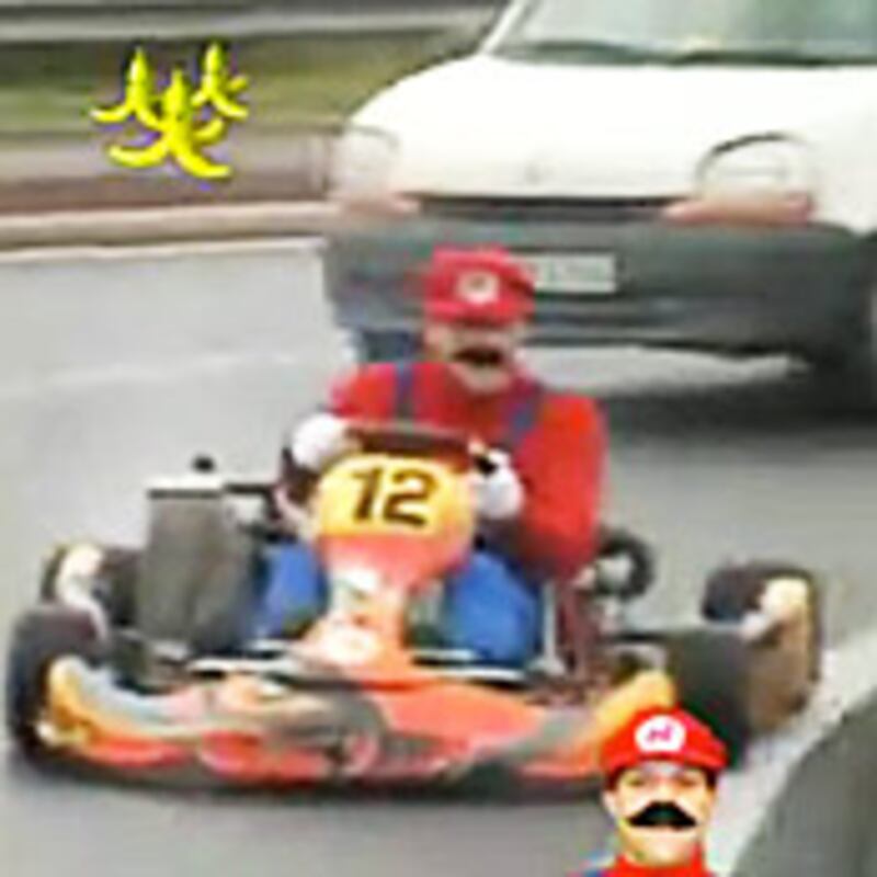Oh, Mario Kart, how do I love thee? In this video, Remi Gaillard, French prankster and performance artist, careens through the streets of France in a white-knuckled real-life version of the Nintendo racing game. With banana peel weaponry, a go-kart, a fake moustache, and the full range of sound effects, Gaillard reenacts the game in hilarious, bold, and, I would argue, heroic fashion in a country where many people drive as if they were in a French Connection chase scene.