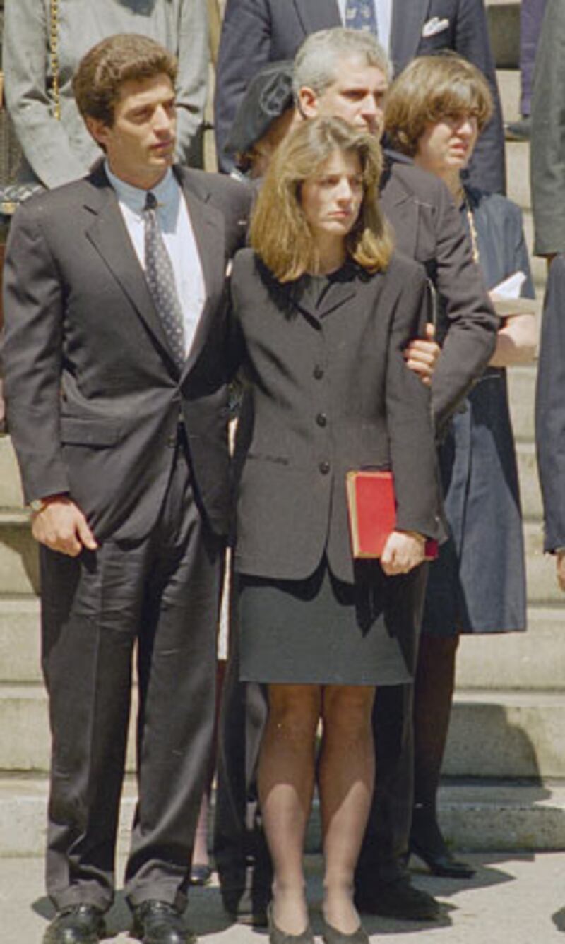 JFK Jr. and his sister, Caroline Kennedy mourn the loss of their mother, Jacqueline Kennedy Onassis, in New York City in 1994. A book, The Kennedy Curse, reported that Jackie O had premonitions that her son would die in a plane crash, and urged him not to fly.