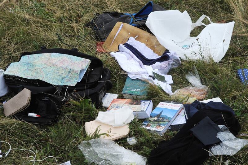 Belongings found at the crash site of Malaysia Airlines Flight MH17 are pictured near Grabovo on July 20.
