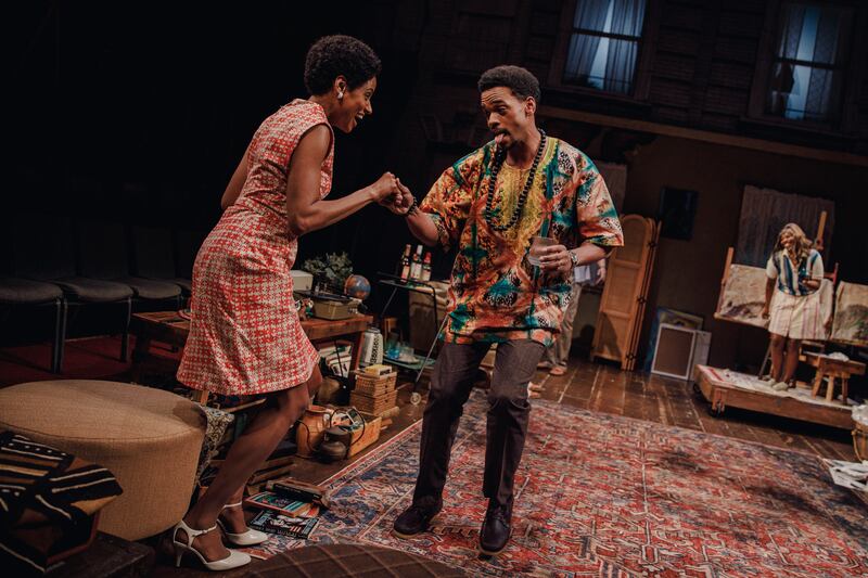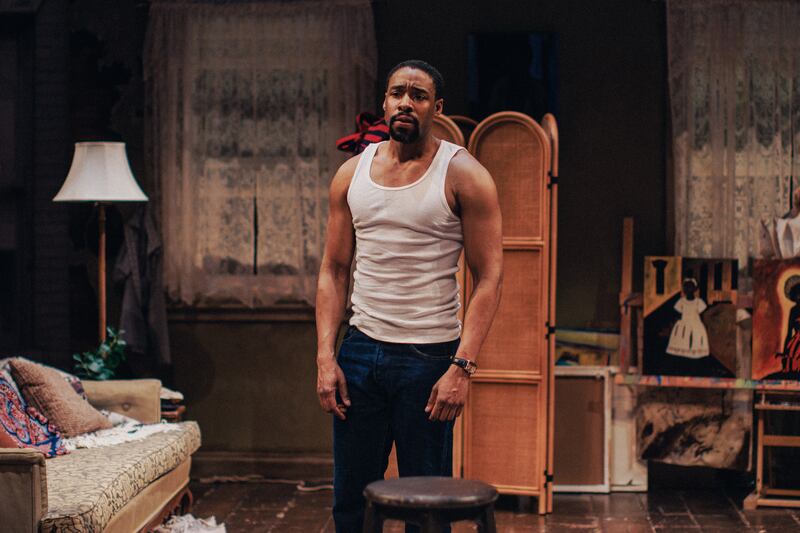 The apartment/artist’s studio in front of us—Arnulfo Maldonado’s design is delightfully evocative, with lighting by Jeanette Oi-Suk Yew—is owned by Bill Jameson (Grantham Coleman), whose interest is not in the social unrest outside, but in finishing the triptych of the play’s title; little does he know it, but the model he finds will challenge his views on art, women, and race.