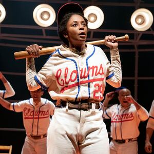 Then there is the charm and sharpness of the ensemble. Principally, that charm belongs to Harper, who makes you intensely root for Kenneth once it becomes evident how damaged he is, and once we see the devastation inside him. But the others shine too. April Matthis—who in 2019 in this very theater, triumphed (winning an Obie Award) as Toni Stone, the first woman to play professionally in baseball’s Negro Leagues—plays a number of roles, principally Corrina, a waiter at Wally’s, Kenneth’s favorite restaurant where he sinks Mai Tais (so many Mai Tais… they end up on the table, lined up like skittles).
