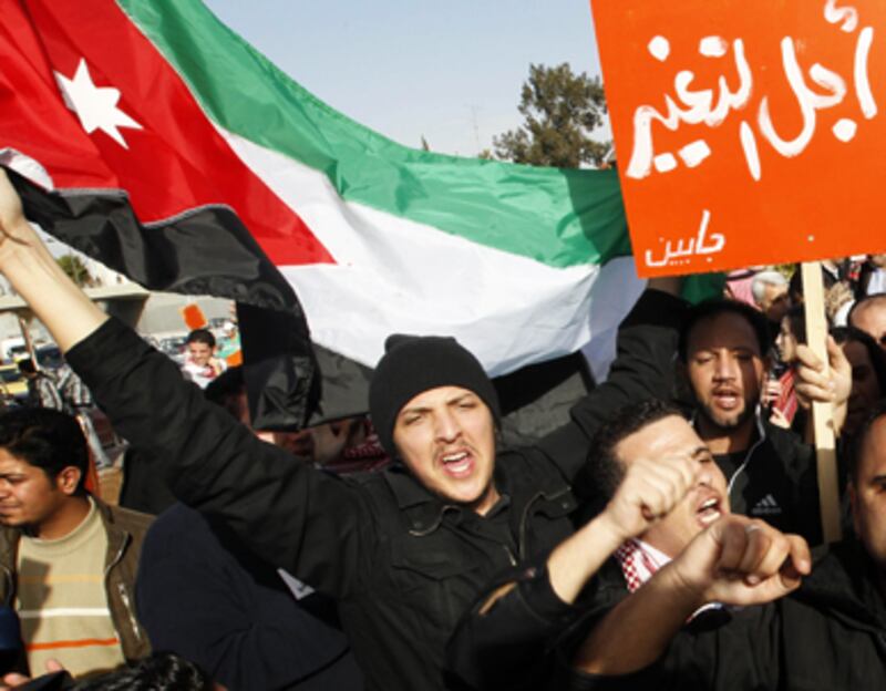 Thousands of Jordanians—mainly young and middle-age men with T-shirts and posters emblazoned with messages of protest and images of Che Guevara—took to the streets to demand political reform.