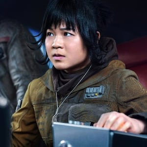 Rose delivered one of The Last Jedi’s most powerful lines after stopping Finn from sacrificing his life in a doomed attack on a First Order siege cannon: “That’s how we’re gonna win. Not by fighting what we hate. But saving what we love,” she said, before planting an innocent kiss on him. In The Rise of Skywalker, Rose delivers little more than technical jargon and remains offscreen for most of the film; she could just as well be an extra.