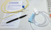 A sterile surgical lubricant such as olive oil is applied to the nostril. The feeding tube, which can be as large as the nostril itself, is snaked into the nasal cavity. Patients report extreme pain and excessive tearing up during this step since this area is rich in nerve endings.