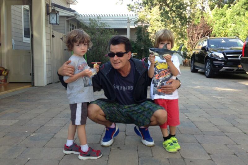 Charlie Sheen shared this cute family portrait of himself, his boys, and some fierce sharks. The Anger Management star appeared to be having fun, spending quality time with twins Bob and Max. Recently, the boys have been placed in the care of Sheen’s other ex, Denise Richards, after their mother, Brooke Mueller, entered rehab.