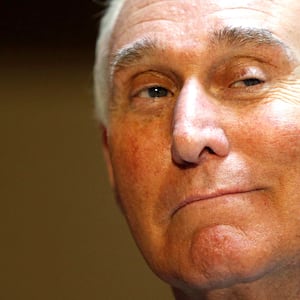 Roger Stone, a longtime confidante of President Trump, called members of the mainstream media “leftist retards” while attacking the coverage of his indictment in Special Counsel Robert Mueller’s probe, according to a video unearthed Monday by Media Matters. On an episode of InfoWars last week, Stone was asked about what he thought of media personalities—like CNN analyst Ana Navarro, anchor Don Lemon, and late-night host Stephen Colbert—“celebrating this illegal takedown of you.” Stone then proceeded to call Navarro a “porquita, a little piglet,” saying she was “50 pounds of [Rep. Adam] Schiff in a 20-pound bag.” He also alleged that she was a “nasty diva” who was “very abusive” to those who worked around her. “So, I revel in your hatred, Ana, and when I’m acquitted I’m going to go right back to criticizing you for your total lack of talent or intelligence,” he said. “Puerco is what I would say.”