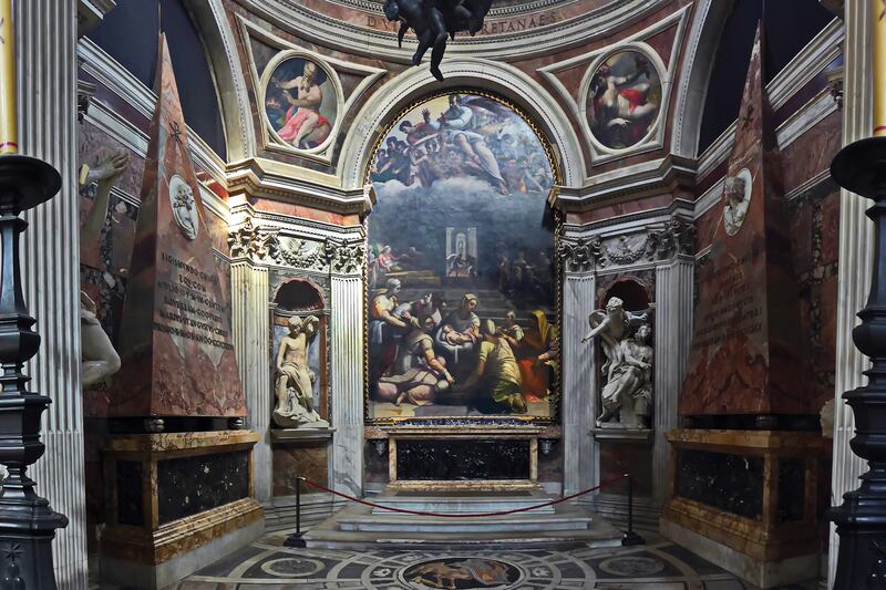 This walk will also bring you close to two churches slightly off the beaten path: Santissimi Giovanni e Paolo—multi-story bell tower decorated with colored tiles, Romanesque porch, dull 18th-century interior—and Santo Stefano Rotondo, dedicated in the fifth century to St. Stephen, the first Christian martyr, and appropriately decorated in the 16th-century with 34 extraordinarily gruesome scenes of martyrdom.