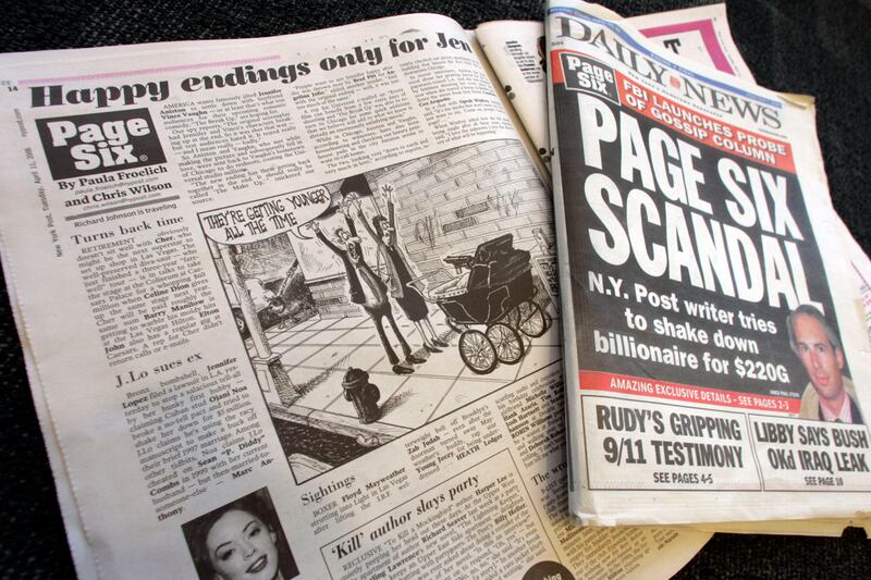 The affidavit also said that in 1997 a local restaurant owner who was frequently mentioned in Page Six had $1,000 sent to Richard Johnson, then the gossip page’s editor. The Post confirmed this, with Allan quoted as saying that Johnson had made “a grave mistake” and had been reprimanded.