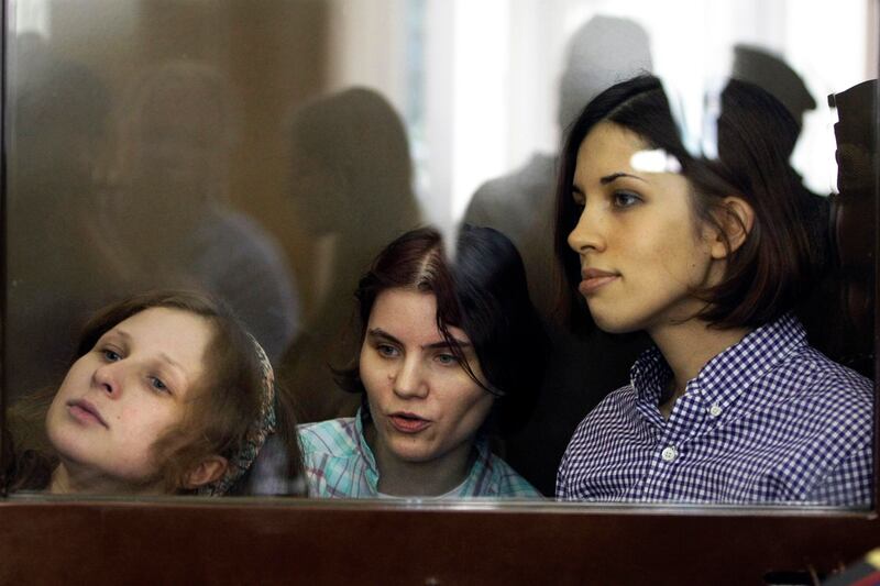 The musicians stormed into the city's main cathedral in February and cavorted in front of the altar, shouting, "Mother of God, Blessed Virgin, drive out Putin!"