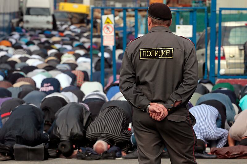 On Friday, more than 150,000 Moscow Muslims kneeled down to perform Eid prayers along streets cordoned off from traffic. With only four mosques for 1.5 million worshippers in the city, many believers had to stand outside and lay their prayer mats on the sidewalk, in slushy puddles of rain and snow. Later, men soaked in sleet walked along the Garden Ring, oblivious to the weather and glowing with happy smiles. On this day, at least, Moscow had to respect their traditions.