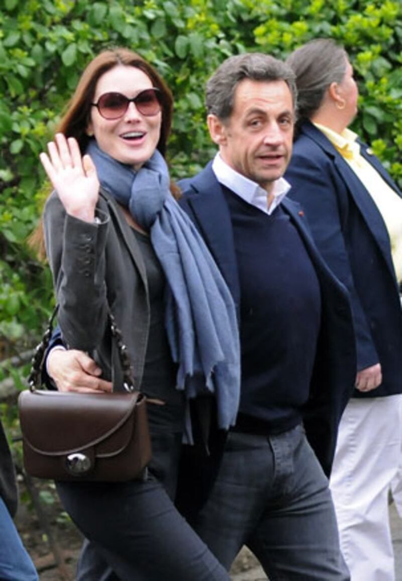 French President Nicolas Sarkozy and his wife, Carla Bruni, leave their Manhattan hotel March 29 on their way to an event at Columbia University in New York. The couple will dine with the Obamas on March 30.