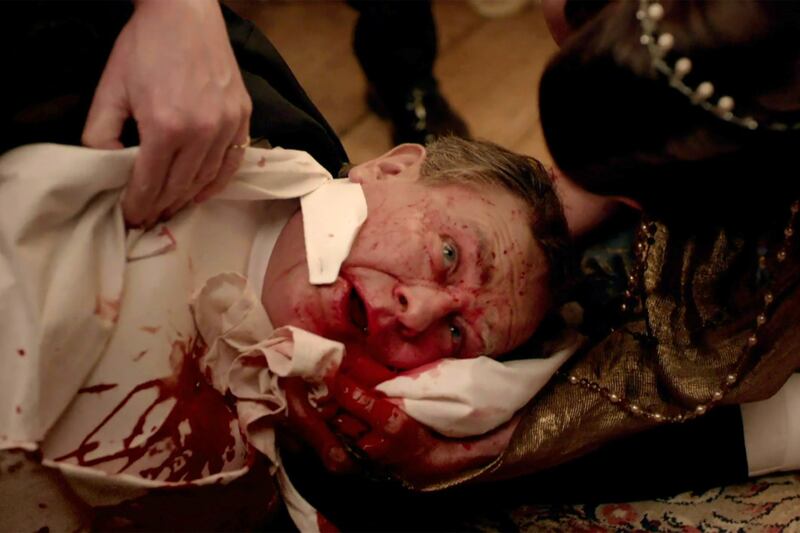 It took an hour to reset all the tablecloths. It had been quite diligently rehearsed. We had done it properly a week previously in a controlled environment. We wanted to make it look as feasible as possible—and had medical advice, and gotten the colors of the blood right—but be as dramatic and shocking as possible. We had three cameras on it, and did it in two takes. It was good laugh.